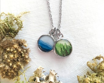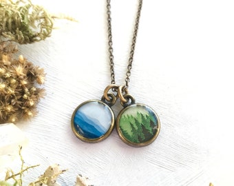 Forest Blue Ridge Mountain Necklace, Cluster Necklace, Green Forest, Blue Ridge, Pine Forest, Blue Mountains
