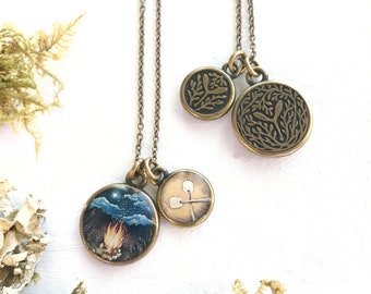 Camping Jewelry, Bronze Art Necklace, Camp Fire, Ring of Fire, Fire Necklace, Gift for Nature Lover