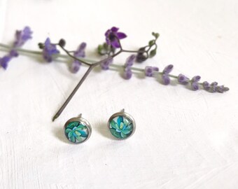 Succulent Studs, Succulent Posts, Green Succulent Art, Succulents, Green Earrings, Seed and Sky