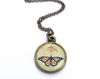 Monarch Butterfly Bronze Necklace, Fall Jewelry, Butterfly Necklace, Orange Necklace, Monarchs