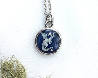 Small Dragon Necklace, Blue Dragon, Dragon Art, Dragon Necklace, Dragon Jewelry, Dragon Lover