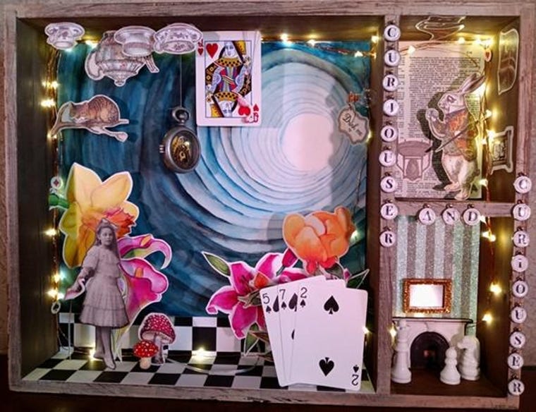 Welcome to Seeds of Imagination Co! Our shop is a creative sanctuary where forgotten treasures find new life and imagination takes root. Founded by award-winning mixed media artist KC Peek, this shop is home to one-of-a-kind dioramas, creative kits, and storytelling tools designed to spark wonder and connection.