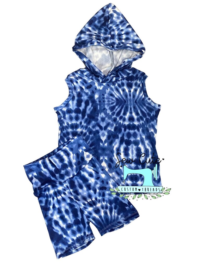 Shirt with hood and biker shorts -