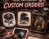 I create dark and gothic-inspired cross stitch patterns inspired by haunted mansions, vintage Victorian aesthetics, horror folklore, skulls, roses, and moonlit skies. I’m drawn to the elegance of darkness and the dramatic contrast between light and shadow.