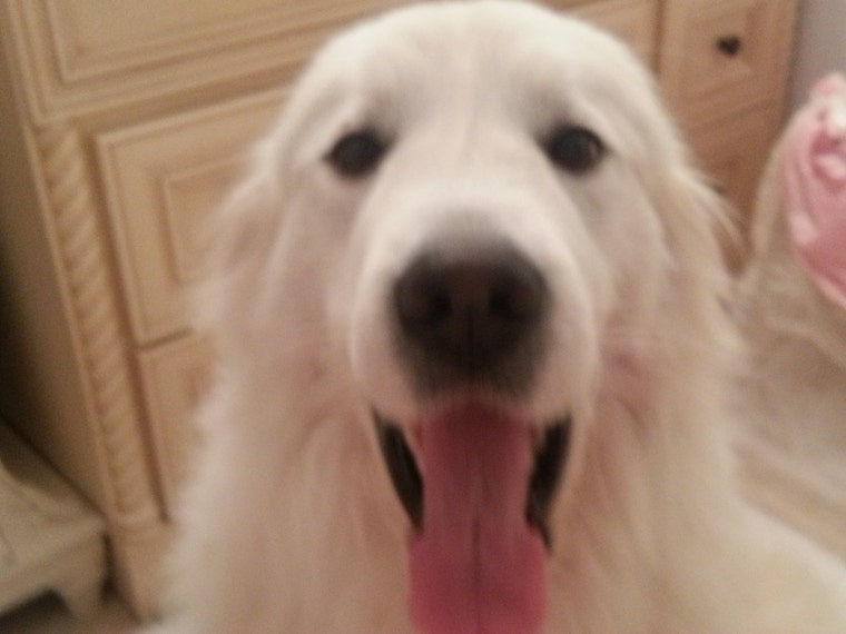 My sweet dog Zoey. She is a Great Pyrenees and guards all the pretty vintage items I find. -