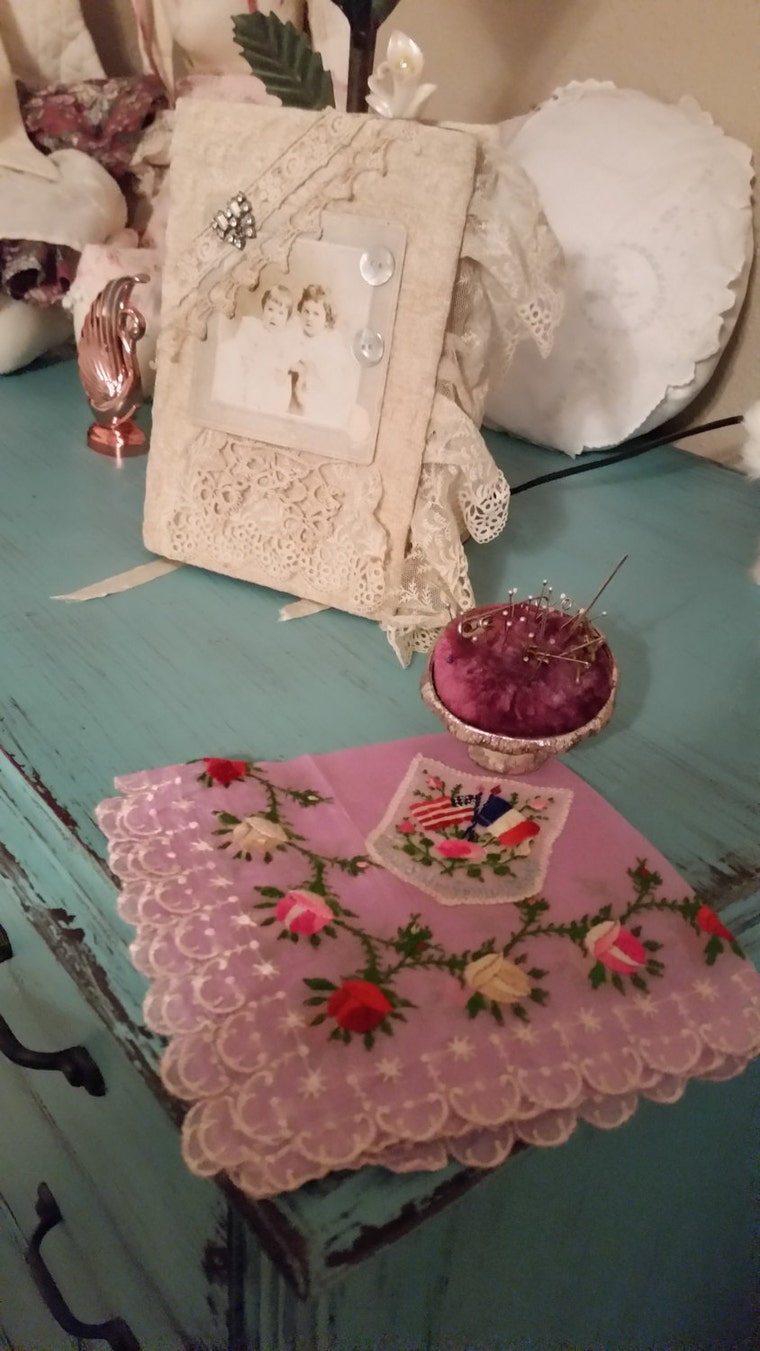 My beautiful French handkerchief from 1900s. An American soldier bought it for his sweetheart while he was in France. -