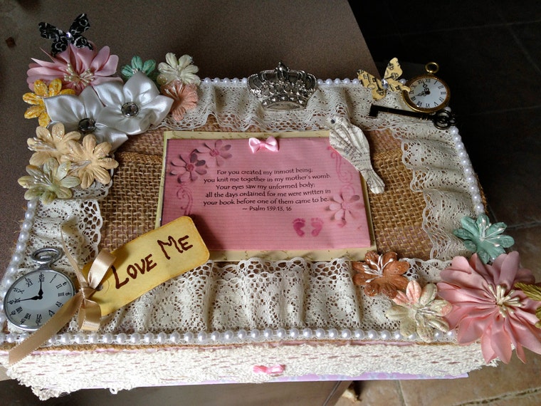 This is the Alice in Wonderland inspired Memory Box I created for her. -