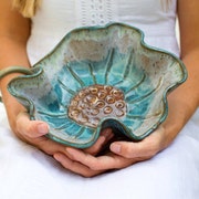 I have had my pottery business for fifteen years. Before working with clay, I was a muralist. I enjoy creating ceramics, because I can still use my skills as a painter. I strive to make each piece an original work of art to be worn, baked in or displayed. I create functional ceramics that people will love to own or love to give as gifts.