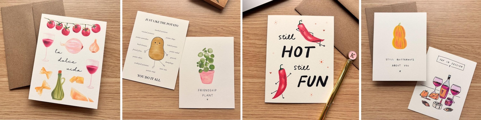 Handcrafted greeting cards infused with cheerful illustrations