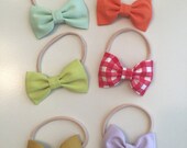 5 out of 5 starsVery quick shipment upon order! And the bows are super cute- not overly huge on my newborn's head, but a perfect size for her to grow into (excited to see how the look changes as she grows). We will get lots of good use out of these over the next few years! And the colors are a perfect range, definitely a great collection! Love the nylon headband option too.