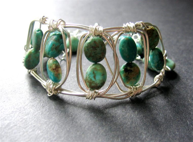 I love working with turquoise and wire. This piece combines them both nicely. -