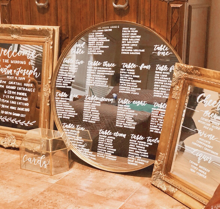 If you need chalkboards, mirrors, plexi glass or wooden signs for your wedding just send me a message and we can work out the details ! I can shop for mirrors, etc. and send you photos and proof pictures before I start.