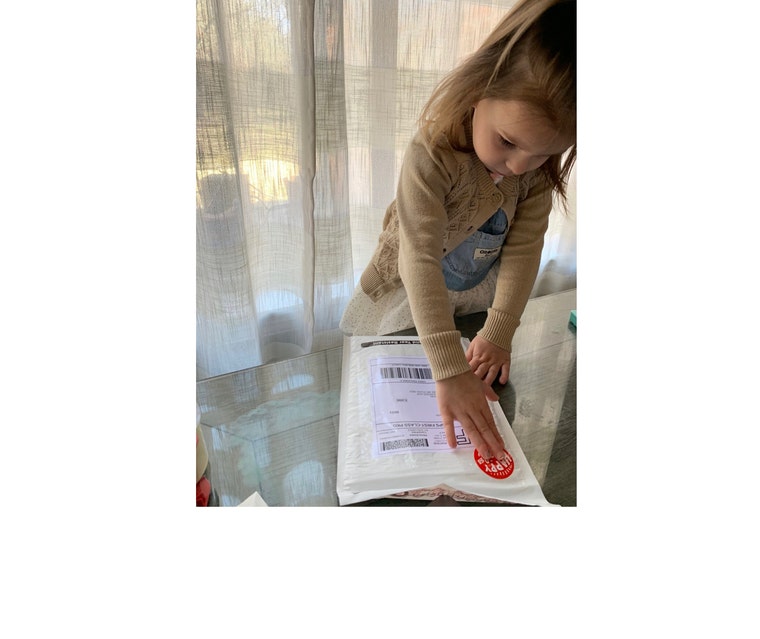 My little assistant adding packaging stickers -
