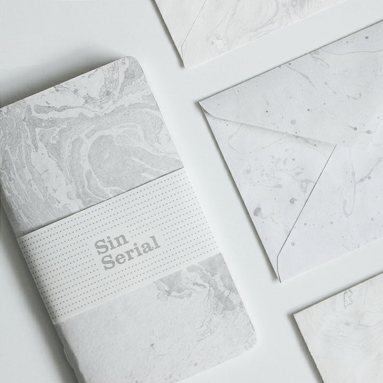 Silver ink on white cover notebooks and envelopes -