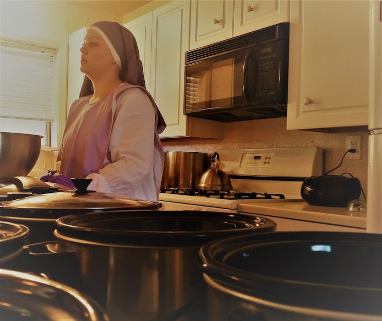 Sister Kassidy, in the kitchen of the Sisters' abbey in central California. -