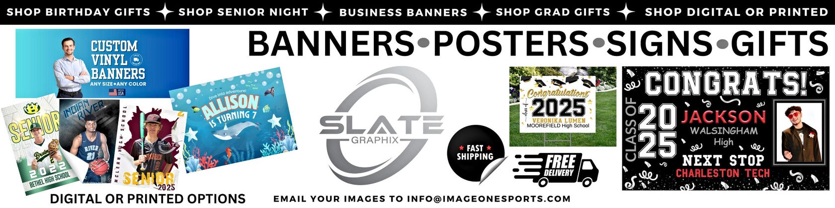 5 out of 5 starsOur Senior Night banners are INCREDIBLE! High quality product, excellent customer service - I will definitely order from SlateGraphix again!