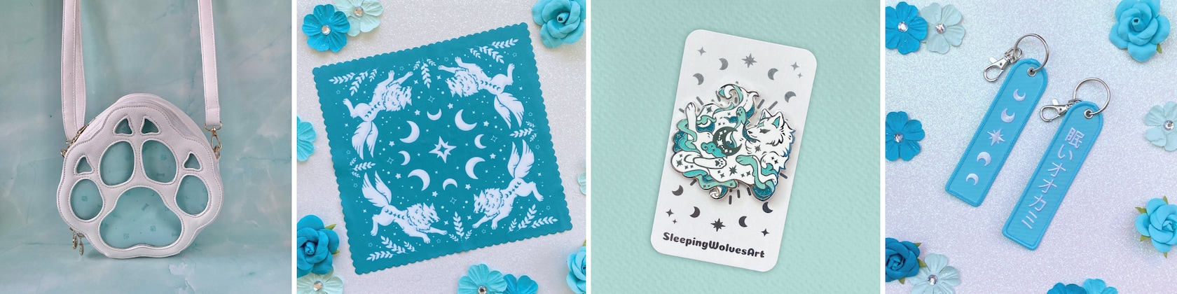 Hi, I'm Kim the heart of SleepingWolvesArt! Based in San Diego, California, I am an independent illustrator and designer who is solely in charge of creating the artistic content and packing all orders with lots of love for SleepingWolvesArt! I enjoy creating art not only that I enjoy, but that other people will love and share with others. I am happy and grateful to have found the perfect creative outlet for myself and the means to do so with all your support!