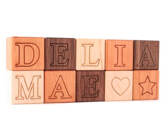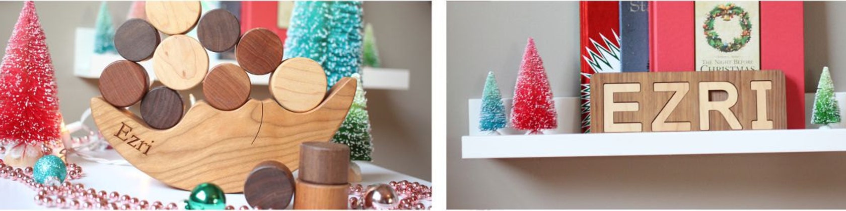 Our personalized wooden toys are heirloom quality and guaranteed to last a lifetime :: wooden blocks, baby rattles, name puzzles, wood teethers, toy cars, name blocks, baby's first Christmas ornaments, educational toys, and more :: finished with organic oil and locally sourced beeswax