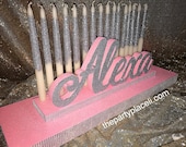 Candelabras: The name on the candelabra comes with dowels. We create holes in the base in the right spot for each dowel. You will simply place the dowels into the holes. It's best to do this at your event. Candles look best when straight. Take the time to straighten your candles. FInd the perfect spot for your candelabra! Best for pictures and free of drafts that can hinder the candles flames.