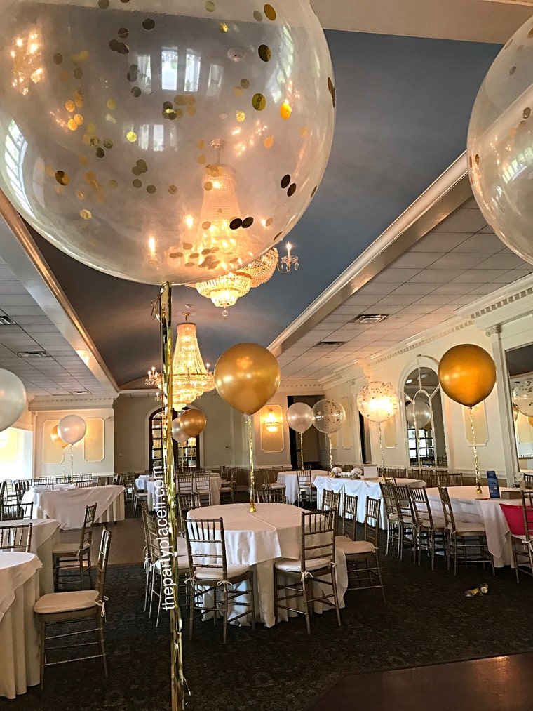 Gorgeous Confetti balloons with metallic tassels! -