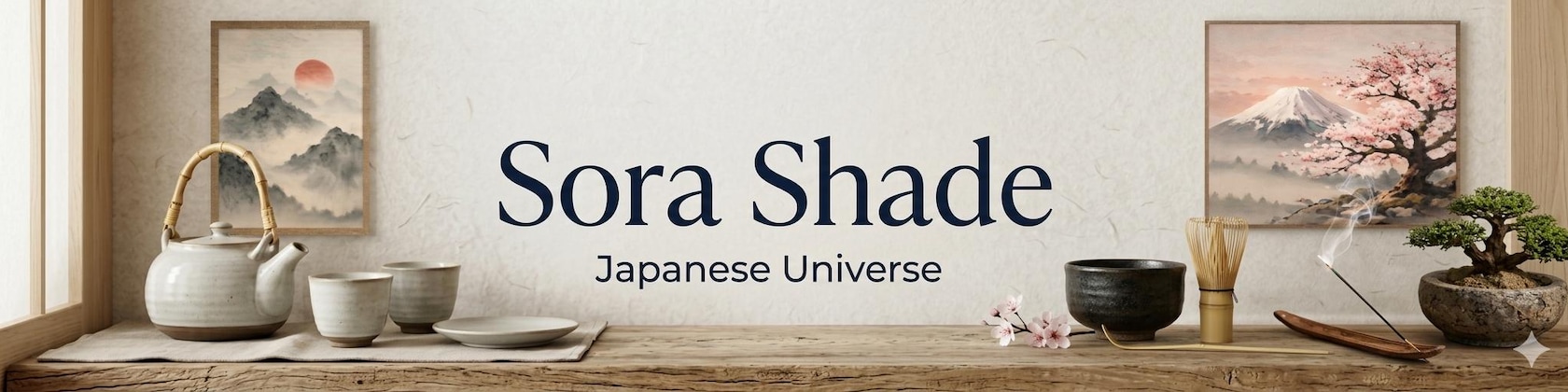So, I decided to launch Sora Shade with a clear approach: to offer a carefully curated selection of tea sets, wall art, tableware, and accessories, all chosen for their harmony and ability to create a calming atmosphere. The goal is to offer products that are both beautiful and accessible, allowing you to easily integrate a modern Japanese aesthetic into your daily life, with particular attention to detail and overall coherence.
