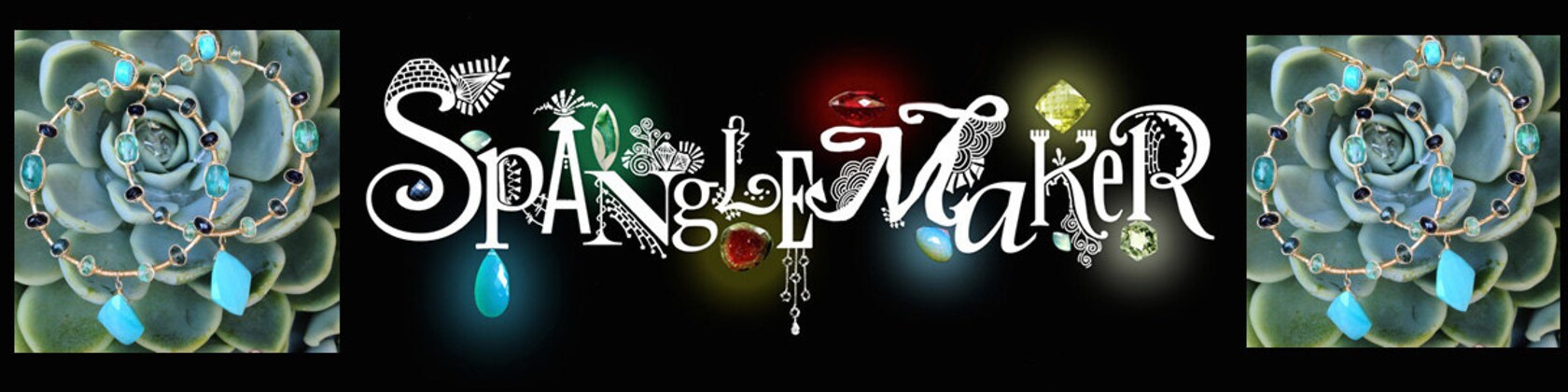 I have been a jeweler since I was a little girl. Sometime in college I graduated to working with fine metals and gemstones and my roommates were eager to borrow from my fast growing collection of handmade creations. SpangleMaker Studios started growing as a business whenever I would sell a one-of-a-kind piece to an admirer. I started my business in New York City, where I lived for 10 years, shopping in the heart of the diamond and gems district--I still have my same stone suppliers 17 years later. I then moved to Amsterdam with my husband for 4 1/2 years where I met an amazing stone dealer who had the most exquisite Druzy from South America. Living in Europe, I was able to travel easily to Asia and pick amazing gems in Bangkok, explore the Hmong embroidery and tapestry styles in North Thailand and Laos, and collect seashells from every beach I have ever touched---all materials I incorporate into my work.