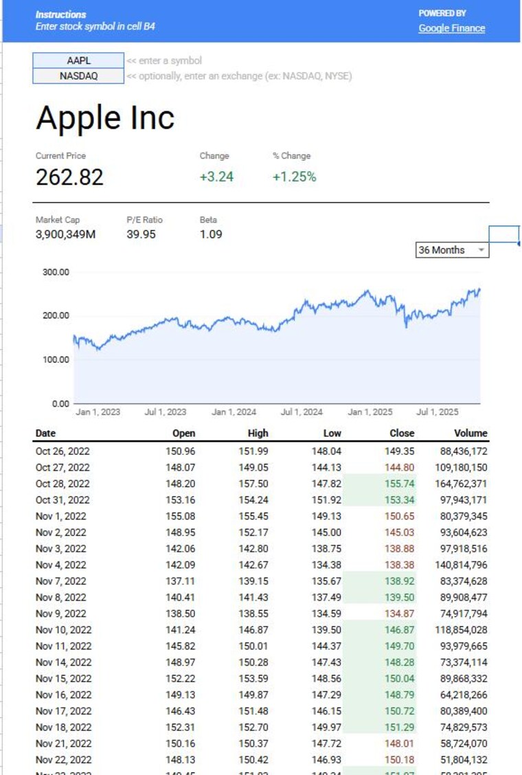 Price History: Enter a symbol to see a live 3-year chart with daily closes and % change. -