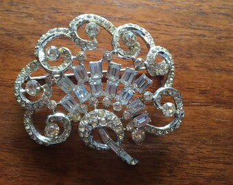 An Elegant Rhinestone Fan Brooch