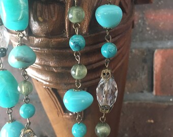 Faux Turquoise and Rhinestone Vintage Beaded Necklace 19 Inches