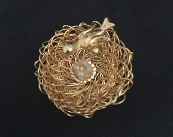 Gold Bird Nest Vintage Costume Brooch