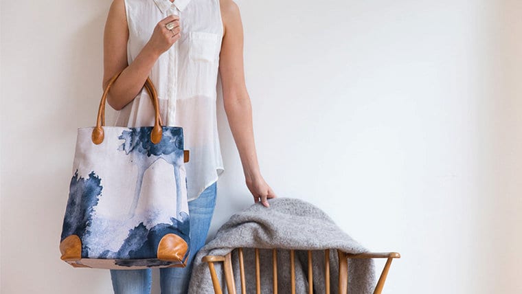 Genuine leather and cotton canvas make up our Midnight Ink Tote Bag. -