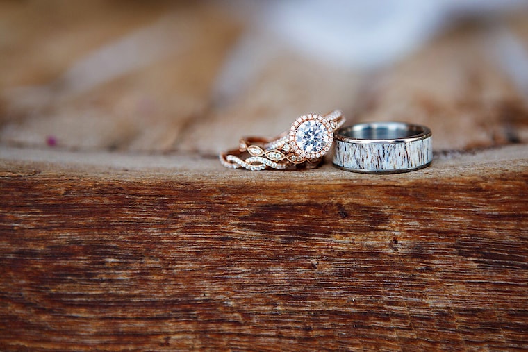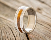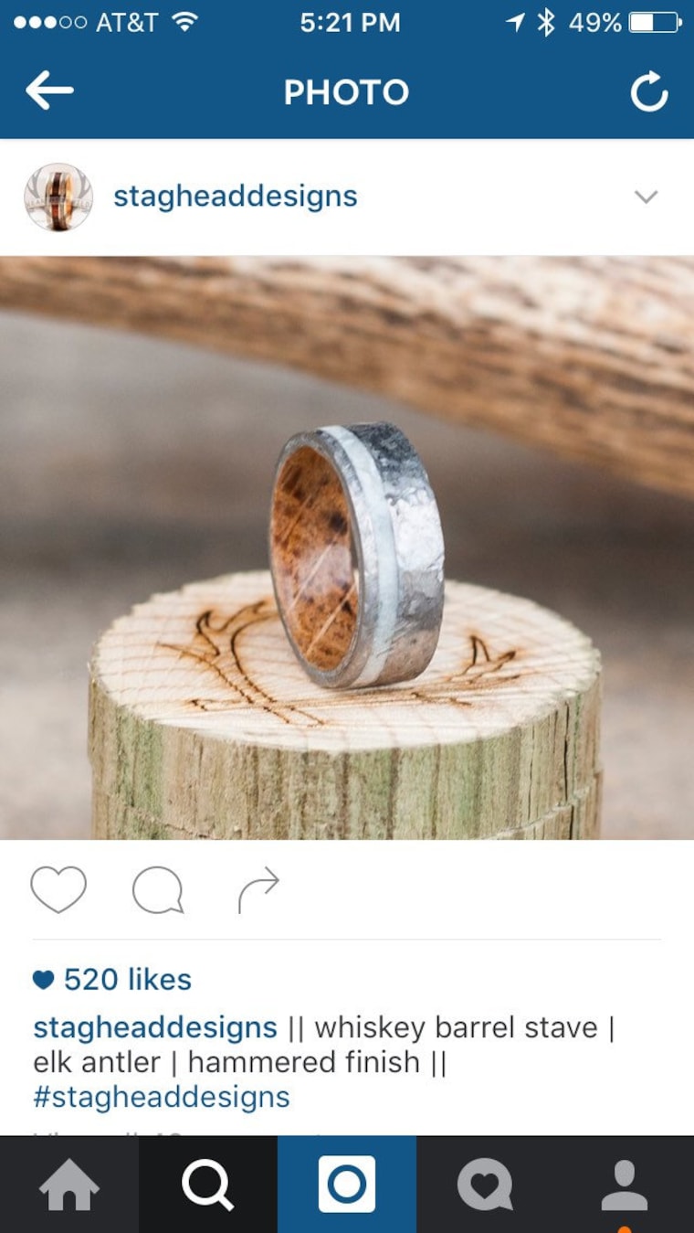 Whiskey barrel wood paired with antler and a hammered finish. Does it get any manlier?