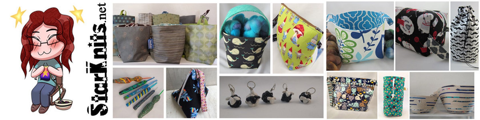 I have since started to vend at fiber festivals and craft shows and really love it. I'm constantly working on new bag designs and falling in love with new fabrics. The bright colors and cute characters always get me.