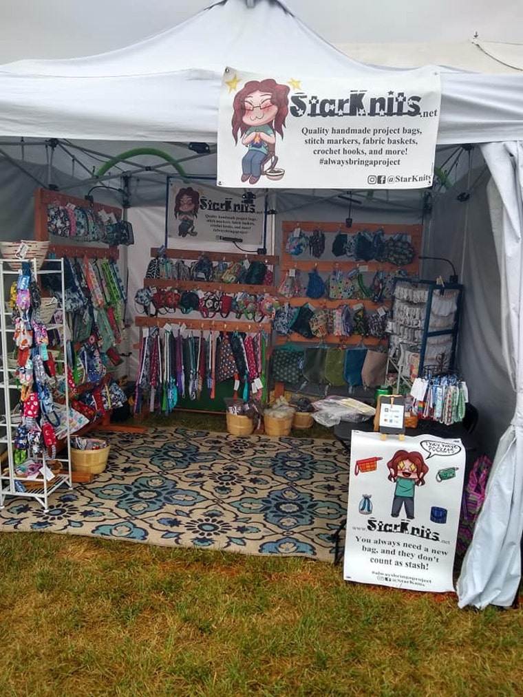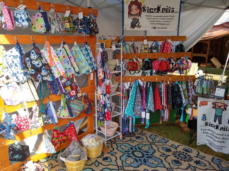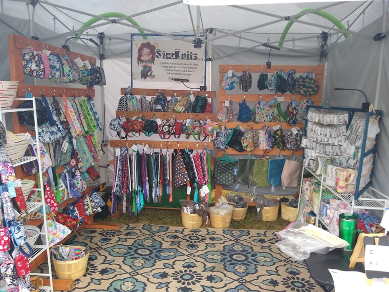 Desde entonces he comenzado a vender en festivales de fibra y espectáculos de artesanía y realmente me encanta. Estoy constantemente trabajando en nuevos diseños de bolsos y enamorándome de nuevas telas. Los colores brillantes y los personajes lindos siempre me atrapan.