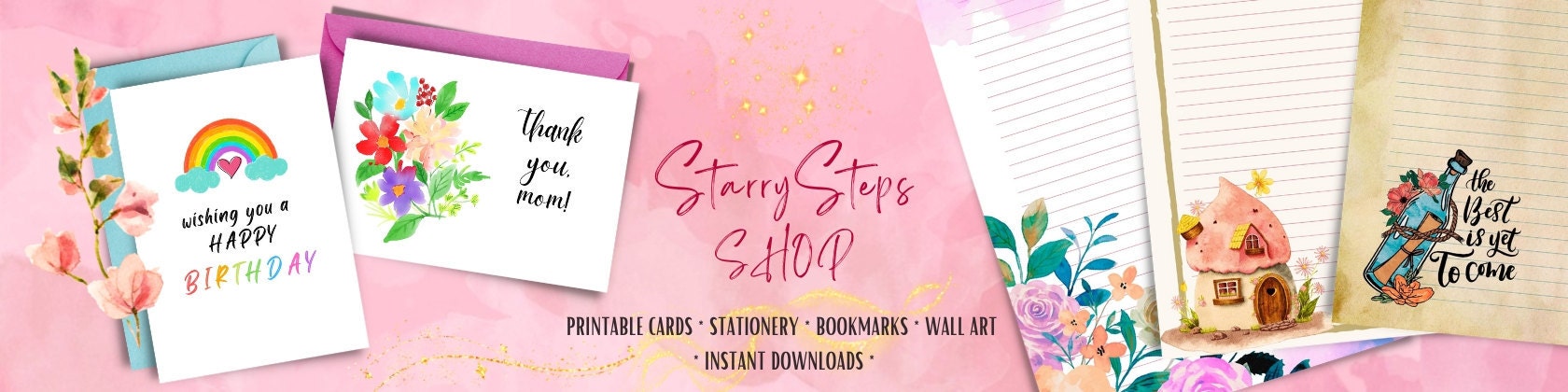 Ever since I was a little girl, I remember enjoying watching my mother writing the usual holiday cards, put them carefully into their perfect envelopes to send to family friends and colleagues, be it Easter, Christmas or New Year's! Not to mention the occasional colorful birthday cards. So, it has also been a lovely and cozy part of my life to create a variety of crafts and art, always busy about something cute or elegant to offer.. or simply just enjoy. I love creating lovely colorful cards, printable stationery and other digital products. My designs are full of color, cuteness and happiness, mostly floral and seasonal. I believe in spreading joy in peoples' lives, putting a bright smile on their face!