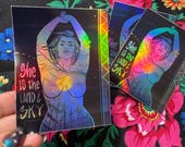 5 out of 5 starsThe artist illustrates women so beautifully and the holo effect still allows the image to be seen when it's put on a laptop/folder/water bottle. As always, thick, good quality material for the sticker itself.