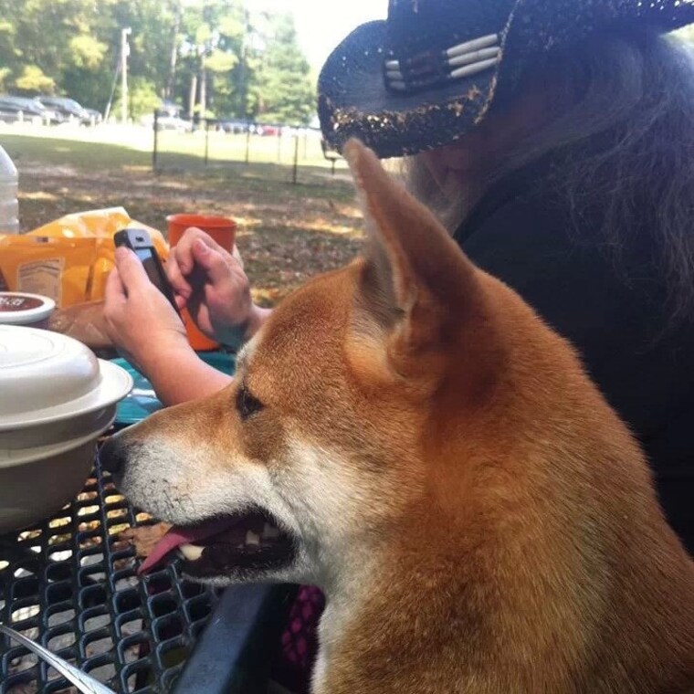 Taking a break from the office and having picnic with the family. This is me(Connie) and Toshi.