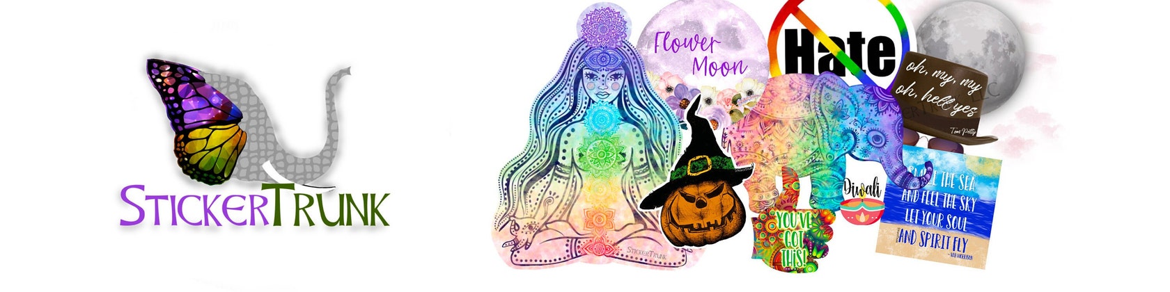 Hi! I'm the owner and creator of StickerTrunk! I'm a mom of 3 kids (and multiple animals) that loves creating things that make people happy. I use exclamation points and emojis more than the average person. Elephants & Color make me very happy!