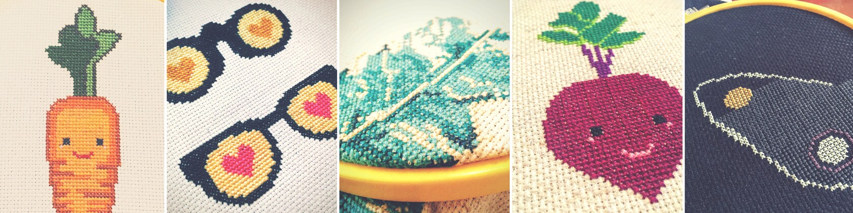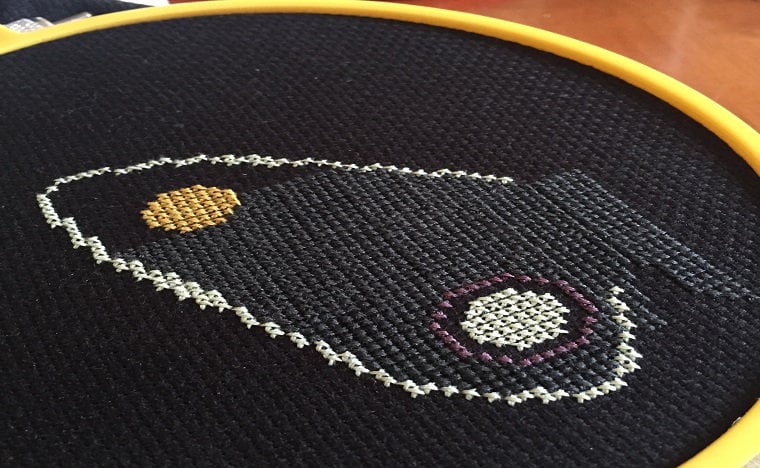 I started designing my own cross stitch patterns about three years ago after a friend asked me to help her make a custom piece as a gift. Before I knew it, I had made multiple patterns to be stitched as handmade gifts for all of our friends. I’ve been working ever since to make interesting, unique and funny cross stitch patterns, spending hours each week either making patterns or stitching in front of the TV.