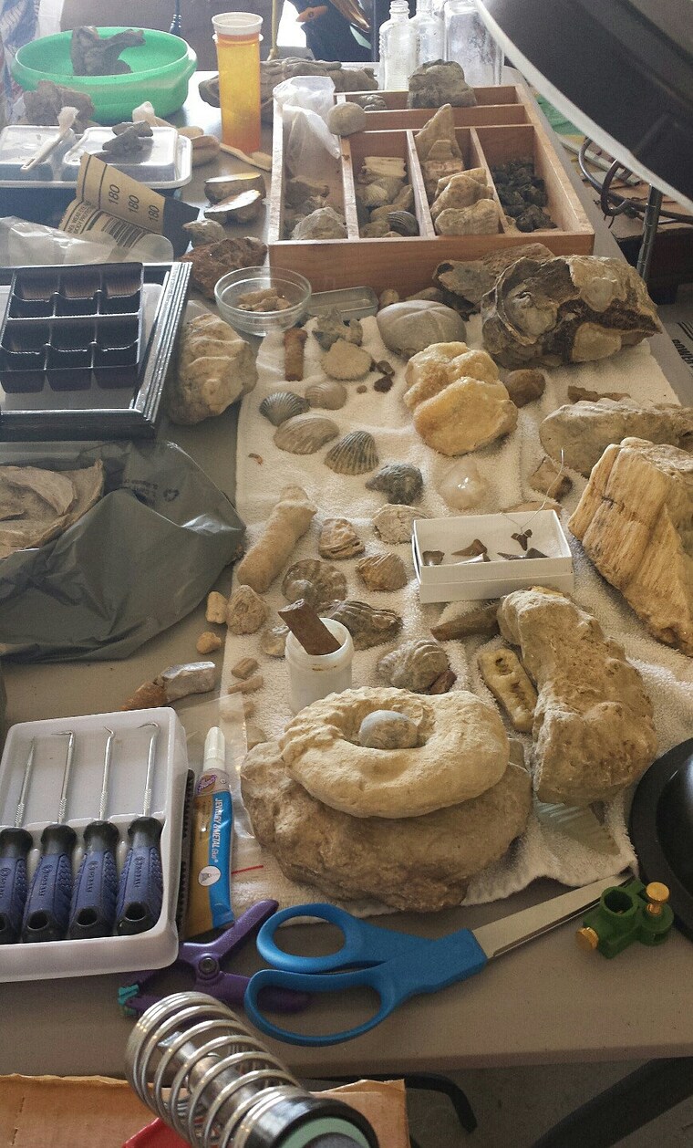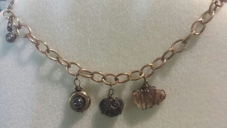My name is Patricia Stone and my husband is Chuck Stone (the reason for the name "StoneTimesTwo"). I love making things, and have worked with lots of different crafts and mediums through the years, even taking on remodeling an old farmhouse when my kids were little! Now those boys are all grown up, and I have much more time! I began working with stained glass about thirty years ago and loved it. I have always loved jewelry, especially vintage jewelry, and began making my own pieces about ten years ago. My creative efforts have grown to be a family endeavor. We have combined what we all love to do into creating what we feel are beautiful pieces of art. Sons Patrick and Wade are the fossil hunters (and anything else unusual they find) and supply me with fossils, bones, crystals and many ideas & encouragement. They work on each piece they find - cleaning, cutting and shaping, and polishing - until they feel they are just perfect and ready for the shop or for me to use in jewelry. They love the outdoors and kayak down the many creeks and rivers in Texas searching for their treasure. Chuck has plenty of ideas, does some wire-wrapping, and always comes up with a way for my ideas to work in a practical way (like how to hang, etc.) He also does any woodwork involved, such as the frames for my stained glass pieces. I design the jewelry and stained glass pieces and create them. I have always loved rocks, since I was a child. That love of stones and several serious illnesses started me on a lifelong journey of learning everything I could about energy healing. After a career in the corporate world, I became a massage therapist and owned a healing retreat. So my pieces are a combination of color, textures, healing energy, and love for what I do. We hope you enjoy our creations! ( Also, we have included items we just "love", such as antique books, doorknobs, and old stuff. We love finding "art" in everyday things, too.)