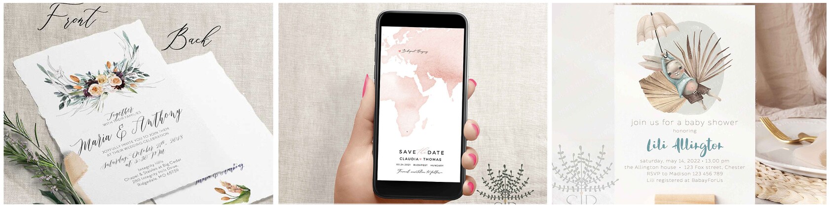 Please refer to each individual listing to see what is editable and what is not. Some of our invitations are PRINTABLE but NOT-EDITABLE! These are the listing we edit for you and send the ready-to-print files.
