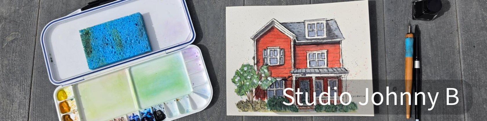 Welcome to Studio Johnny B — custom watercolor house portraits painted in a loose, expressive ink and watercolor style.