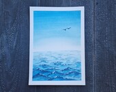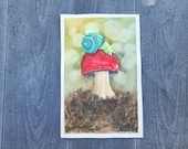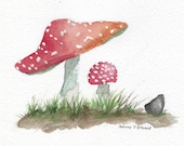 Each painting is hand-drawn with a dip pen and Noodler's waterproof ink, then painted with professional Daniel Smith watercolors on Arches cold press paper. No two paintings are ever the same.