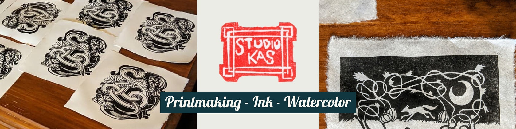 Linocut and mixed media art prints