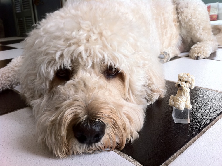 A custom order for Yogi the dog as a bobble head sculpture. I make custom beads of your pets and favorite items. -