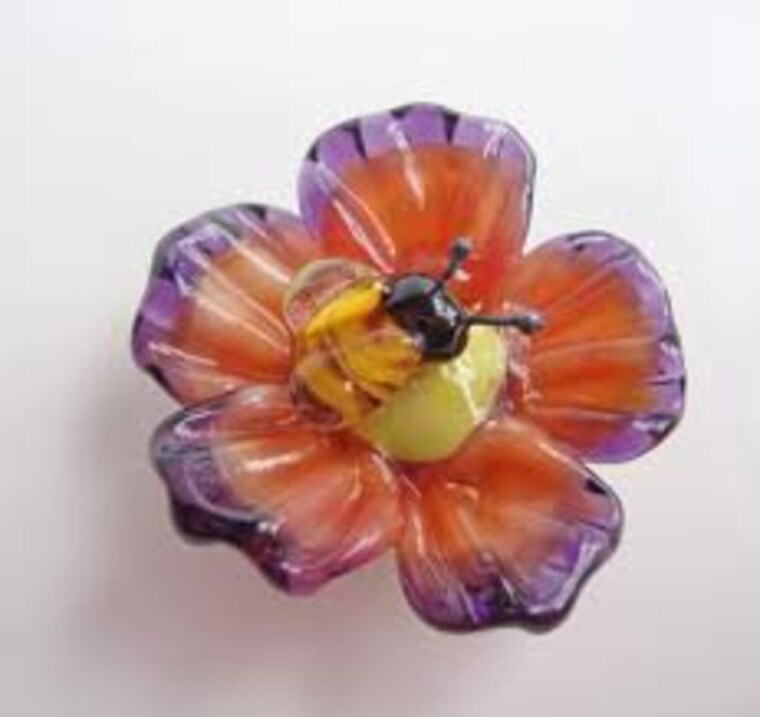 My sculptural flower beads with a flat back. It is good for jewelry, as a large button or embellishment. Love the bee! -