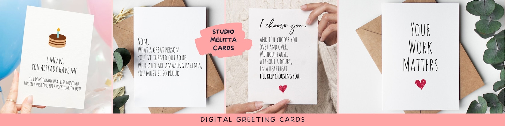 Mes cartes de vœux sont des TÉLÉCHARGEMENTS INSTANTANÉS - aucun produit physique ne vous sera expédié ! ❗️En raison de la nature de ces articles, les remboursements ne sont pas acceptés.Si vous rencontrez des problèmes avec le téléchargement ou l'impression des cartes, veuillez me contacter, je serai heureux de vous aider à résoudre le problème.