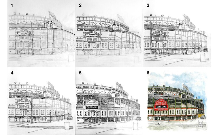 My process for the Wrigley Field Drawing! Go Cubs Go!!!!!! -