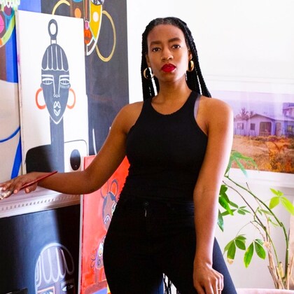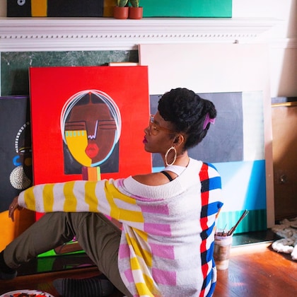 Mi obra se guía por la memoria ancestral, la narrativa cultural y el propósito; arraigada en mi herencia trinitense, mi fe y las mujeres y comunidades que me criaron y formaron. Cada retrato surge de una profunda conexión con el linaje y las creencias, utilizando el color, la abstracción y la forma para honrar la resiliencia, la presencia y la complejidad sin necesidad de explicación.