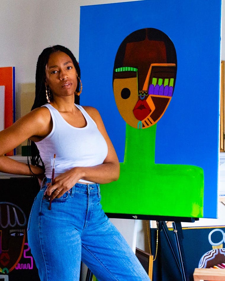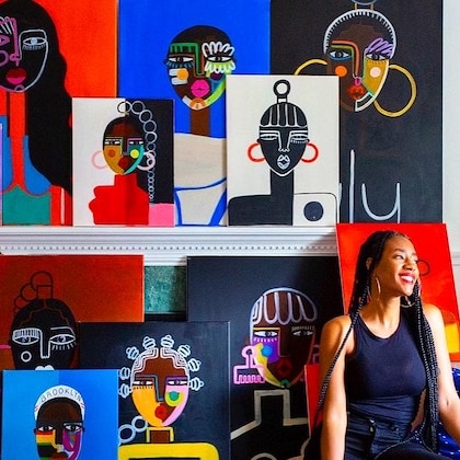 Soy Kristen Woollery, una artista nacida en Brooklyn y radicada en Washington D.C., cuyo trabajo celebra la fuerza, la belleza y el espíritu de la mujer negra.